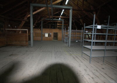 Die größere Einheit mit ca. 245 m² verfügt über eine besondere bauliche Struktur: Ein Teil der Fläche ist um ca. 80 cm erhöht, wodurch sich unterschiedliche Ebenen innerhalb der Einheit ergeben. Diese Gegebenheit kann z. B. zur strukturierten Lagerung oder Trennung von Bereichen sinnvoll genutzt werden. Zudem ist diese Einheit direkt mit dem Auto befahrbar und verfügt über ein großes Schiebetor, wodurch das Be- und Entladen besonders komfortabel ist.